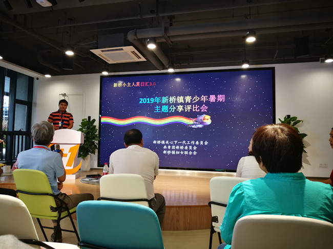 9月4日下午,由镇团委、妇联和关工委联合举办的2019年度“新桥小主人夏日汇”3.0暨新桥镇青少年暑期主题活动分享评比会在新桥大厦举行,来自12个村、社区的团支部书记、妇联主席和关工委主任参加了此次活动,镇党委副书记俞建君,纪委书记刘龙国,组织委员王华,宣统委员丁欢庆等也出席了本次活动。 朱家弄村以PPT的形式分享今年暑期开展“绿色暑期,法润同行”的青少年主题活动,活动主要以关爱青少年为主,通过大力开展普法宣传教育,切实维护青少年合法权益,同时用传统文化和核心价值观影响青少年;让青少年扣好人生第一颗扣子。最后俞建君做了总结,希望各村和社区能充分利用身边资源,将明年的暑期活动办得更精彩。