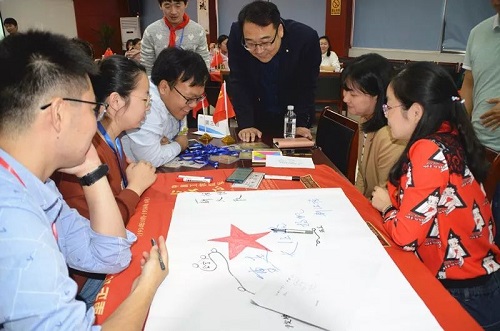 为大力弘扬长征精神,进一步激励年轻干部不忘初心、牢记使命,强化担当、奋勇作为。10月16日,奔牛镇在新市村党群服务中心会议室开展“不忘初心、重走长征路”年轻干部红色沙盘主题党日活动。本次活动邀请苏州大学马克思主义学院张贺老师授课,全镇42名年轻干部参加。 活动刚开始,在张老师的带领下,42名学员分为6个小组,各组在组长的带领下,群策群力,头脑风暴,组成了一个个拥有响亮名号的队伍:“红色娘子军”、“星火队1”、“薪火队”、“破茧化蝶队”、“戴家军”、“星火队2”,通过口号和动作向大家展示自己的队伍风采。 活动过程中,大家通过观看长征影片、讲述长征故事,回顾当年红军突破围追堵截,跨越万水千山,战胜无数艰难险阻的英雄伟绩。 在模拟战役过程中,各小组运用数学、逻辑、军事思维战略部署“兵力”、“物资”、“装备”、“弹药”,体验了血战湘江、四渡赤水、巧渡金沙江、飞夺泸定桥、过雪山草地等关键战役,利用道具七巧板完成“修补桥面”“谍战密码”等战役中的既定任务,亲身感受革命先烈坚定信仰、不畏艰险、勇于牺牲的崇高风范,缅怀先辈们的卓越功勋。 最后,各组组长在成果展示环节中表示,长征精神是中华民族百折不挠、自强不息的民族精神的最高表现。作为新时代的党员,更要走好新的长征路,大力弘扬艰苦创业、厉行节约的优良传统,始终保持共产党人的政治本色。