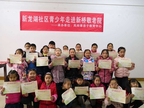 为弘扬中华民族敬老的传统美德,让社区居民和青少年意识到尊老、爱老、助老的重要性,12月1日上午,新龙湖社区组织辖区内的家庭走进新桥镇敬老院,为那里的孤寡老人们带去最纯真的关怀和最温馨的祝福。 在活动现场,杨院长给大家讲解了新桥镇敬老院的创建历史和现状,也对院内目前居住的成员做了简要的介绍。孩子们为爷爷奶奶送上了精心准备的慰问品,这一份份慰问品蕴涵着孩子们对老人深深的敬意与祝福。大家亲切地围在老人们的身边,为他们捶捶背、捏捏肩,聊聊家常。有才艺的青少年则为老人们表演了形式各异的节目,姚依雯同学的《虫儿飞》悠扬动听,周舟的拉丁舞热烈劲爆,周睿远的京剧字正腔圆,韵味十足,现场不时爆发出热烈的掌声和赞叹声。 本次活动还邀请到了新桥镇金阳光书画院的书法老师,为孩子们演示春联的写法,并手把手地教大家如何写出一副笔酣墨饱的对联及横幅。家长们在一旁也看得津津有味,不少家长都加入了写对联的队伍,和孩子一起共同创作。这些春联和福字都由孩子们亲手送到老人们的房间并进行张贴,为敬老院增添了节日的氛围。 活动的最后,社区为小义工们颁发志愿者证书,大家与老人们合影留念,用相机记录这美好的时刻,让点滴行为得到升华。本次活动深深的教育了大家要学会尊老敬老,增强了青少年的社会实践意识、提高了他们的思想修养和自身素质!
