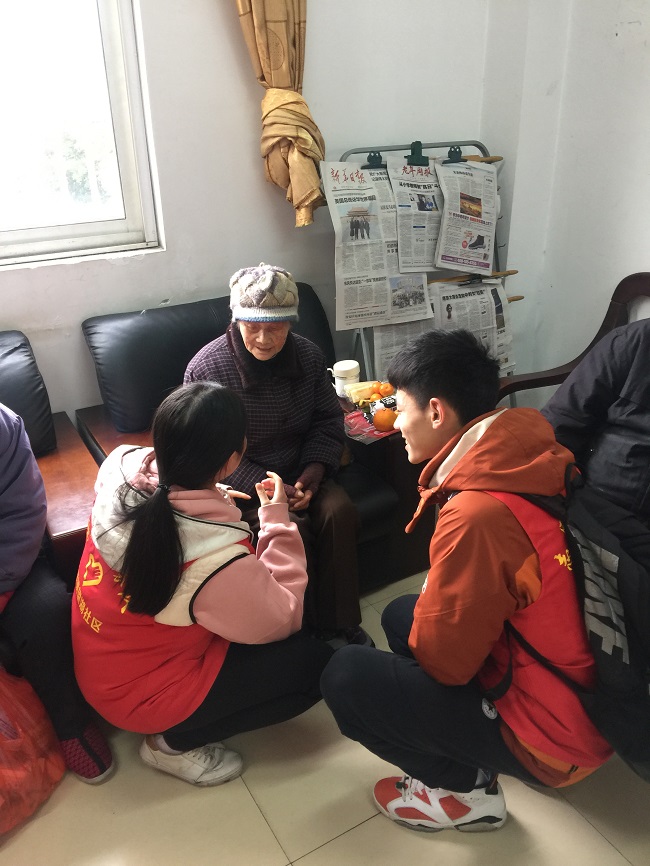 春节将近,为弘扬敬老、爱老、助老的传统美德,12月13日下午望湖社区团总支与旅游商贸学校团委联合组织了辖区15名青少年志愿者前往新桥镇敬老院开展“晴暖望湖,爱洒夕阳”敬老活动,为老人们送去关爱和温暖。 青少年志愿者们为老人们带来了水果、糕点、热水袋等礼物,当他们将精心准备的礼物分发给每位老人时,老人们纷纷表示感谢,沧桑的脸上绽开了幸福的笑容。他们拉着老人的手与他们亲切交谈,询问他们的身体和生活状况,共享天伦之乐。青少年志愿者们更是提前准备了很多小节目,不仅为老人们合唱了《最美不过夕阳红》、《北国之春》、《外婆的澎湖湾》等歌曲,还为老人们表演了健美操,让敬老院弥漫着青春朝气,也充满温馨快乐。 “老吾老以及人之老,幼吾幼以及人之幼”,尊老敬老爱老是中华民族的传统美德,也是新时代构建和谐社会的要求。今天的活动丰富了老年人的精神文化生活,传承了中华民族的传统美德,带动社会各界都来关心关爱老年人的生活,让每一位老人老有所养、老有所乐;让每一位老人都能过着舒心、安享晚年。