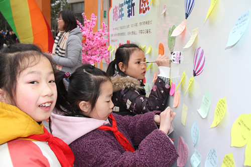 春风送暖芳草香,正是扬帆启航时。我们用心感受春的节奏,带着新年的喜悦又一次出发。 2月17日清晨,静谧祥和的校园中,辅导员们再次走进教室查看各项准备工作,黑板上温馨的话语,窗明几净的教室、整齐无误的崭新书本……与其说是准备,不如说是等待,等待教室充满生机勃勃的一刻,等待欢声笑语的到来。 佩奇家族早早来到校门口迎接逐梦的百草园的少先队员。看,一个个心愿、一个个期待瞬间就贴满了“猪年新愿”墙。京戏、童谣、街舞、拉丁、朗诵、相声……三十多位才艺达人登上了出彩百草娃的舞台,家长朋友们也纷纷驻足观赏。最热闹的是趣味挑战赛,绳圈飞舞羽键翻飞,花式篮球趣味挑战,寒假坚持锻炼的百草娃样样行。温馨照片、手绘名片、年俗研究成果缤纷年味布展区。 百草娃们在意犹未尽中结束体验活动,在展示中收获着梦想、好运、勇气和坚毅的百草福袋,带上它们让我们播下希望种子、辛勤耕耘、用心传递,追梦吧,百草娃!