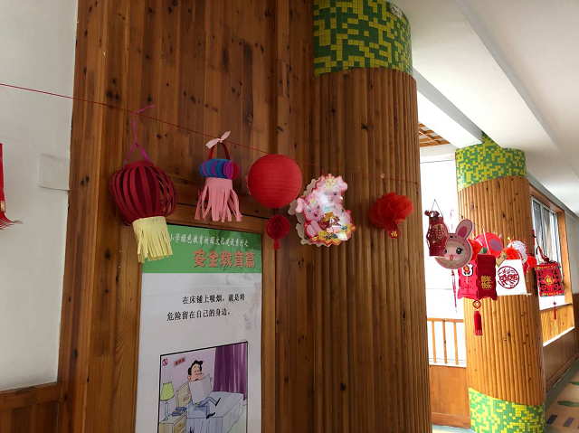 除了赏灯,同时还开展猜灯谜和手工花灯展评活动。各班辅导员利用中午时间带领孩子们边欣赏花灯边猜灯谜,走廊里被一条条写有灯谜的彩色纸条所点缀,孩子们只要猜对了灯谜,就可以到兑奖处领取小礼物。