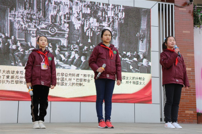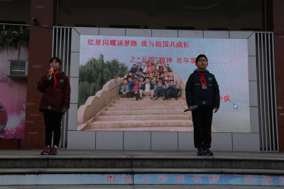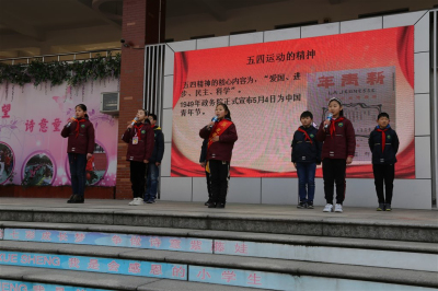 为纪念五四运动100周年,教育引导学生继承、发扬五四运动光荣传统和“爱国、进步、民主、科学”的五四精神。近日,新桥实验小学五1班小露珠中队开展了以“五四精神,百年筑梦”为主题的升旗仪式微队课。本次微队课分为三个小队,首先谈话聊一聊当前热门电影《流浪地球》,以此为突破口,感受中国在各方面日新月异的变化,进而引入视频《厉害了,我的国》,进一步激发民族自豪感。而这一系列的发展,都是100年来无数革命先锋仁人志士心血凝结而成,五四运动便是中国现代化建设进程中的一个重要转折点。第一小队为我们介绍了五四运动爆发的原因,视频直观讲述了运动的发展及其重要意义。第二小队具体介绍了运动中一位本土人物——瞿秋白,以及运动过程中一些热血沸腾的感人瞬间,提炼出“爱国、进步、民主、科学”的五四精神,使同学们有一种身临其境之感,爱国热情油然而生。第三小队结合五四精神,联系少年儿童历史使命,提出了“从小树立远大的理想,艰苦奋斗,实现中华民族的伟大复兴”的新时代目标,最后一首小合唱《少年,少年,祖国的春天》,将满腔爱国情怀化为动力,在践行中升华五四精神。相信通过这次活动,每一位同学都能牢记历史,勿忘国耻,肩负起时代赋予的神圣使命,继承“五四”精神,奋发图强,成为撑起中华民族的脊梁!