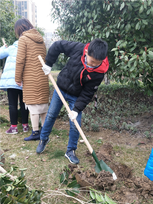 在第41个植树节来临之际,泰山小学“心田服务社”部分家庭的大小志愿者们在三井街道少工委、建管站、城管办等多家单位的组织下开展了植树活动。 3月10日上午,全体志愿者在华山公园集合。首先由三井街道建管站站长张培迪发起绿化家园的倡议,张站长倡议大家牢固树立“绿水青山就是金山银山”的生态文明思想理念;倡导大家做义务植树的“绿色传播者”,做美化环境的“绿色建设者”,做参与创建的“绿色践行者”;提倡大家用热情种下每一棵树,用爱心呵护每一片绿,积极投身到美化家园的活动中。 然后大家分小组开始植树,队员们戴上手套,拿起铁锹,在家长的指导下开始挖坑、种树、培土、浇水……每组家庭忙得不亦乐乎!种好树再给亲手种的小树挂上认养牌,写上自己的祝福语:祝福小树快快长大,祝福我们的环境越来越美,祝福我们祖国的沙漠变绿洲……稚嫩的话语透露着队员们内心对青山绿水美好家园的向往。 最后由三井街道党工委委员纪工委书记白文君、城管办主任丁仁培和团工委书记周雷共同为“三井•青年林”揭牌,大家一起在青年林下合影留念,见证这片亲手种植的小树林的诞生。 亲手种下一棵树,龙城增添一片绿。本次活动以家庭为单位,培养了队员们保护生态环境、营造绿色家园的意识,增强了“植绿、护绿、爱绿”的责任感和使命感,更新了家庭植树造林、保护环境、节约资源的发展新理念和生活新观念。小手牵大手,带动大家一起关注绿化、环保问题,为美丽家园贡献一份自己的力量。