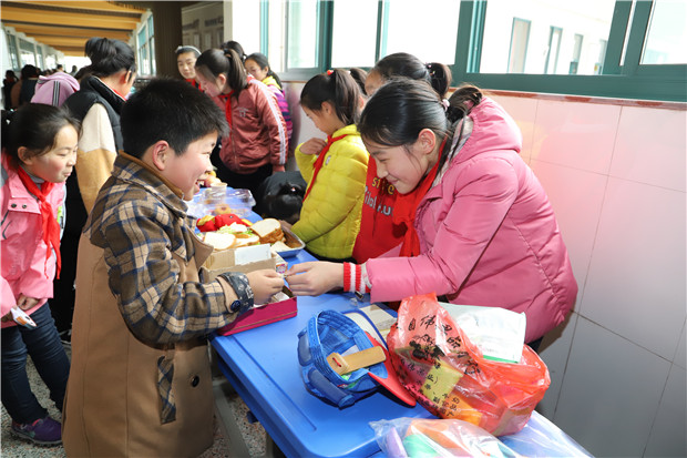 为了进一步弘扬“奉献,友爱,互助,进步”的雷锋精神,培养罗溪中心小学队员们的社会责任,在少先队大队部的精心组织下,3月29日全体师生开展了学雷锋“爱心义卖”活动。 队员们将自己平时节省下来的文具用品、闲置的书籍和作业本、超龄玩具整理出来,标明了价格,整整齐齐地摆放在摊位上,还有现做的水果沙拉、冰激凌蛋糕、蛋挞、棉花糖等,更有套圈圈游戏……整个文化长廊俨然成了一个大型“超市”,“小老板”们都跃跃欲试,等待“小顾客”们的光临和挑选。“走过,路过,不要错过……”“甩卖啊,甩卖……”叫卖声此起彼伏。为了说服别人购买自己的商品,队员们使出浑身解数,妙招频出。“打折出售”、“买一赠一”……还有的干脆拿着东西向熟悉的老师和同伴推销。“小顾客”们也没闲着,他们在叫卖声的吸引下,来回不停地穿行,一会儿在那讨价还价,一会儿跟朋友介绍自己买的宝贝。活动结束后,很多队员还意犹未尽,在老师们的催促下才依依不舍地“收摊”回家。 义卖活动所得善款将由大队部收集公示后,捐给本校的贫困队员,完成他们的微心愿。活动的圆满举行将学校“学雷锋月”活动推向纵深,队员在奉献爱心的同时也获得了成长。(撰稿:杨继芬 摄影:卢庆平 审核:卢庆平)