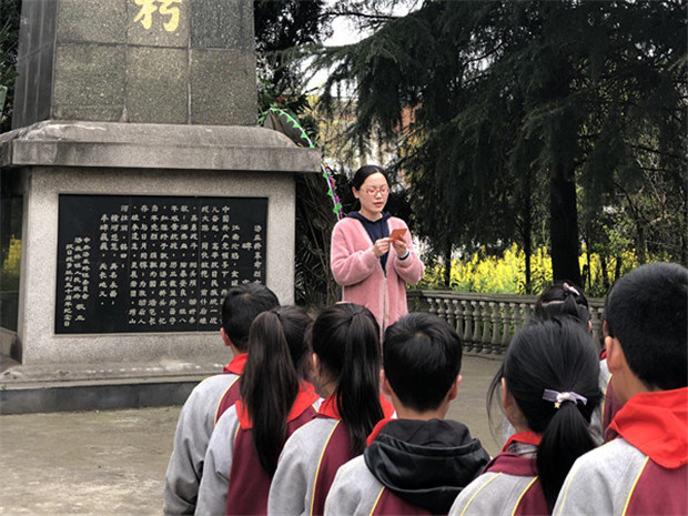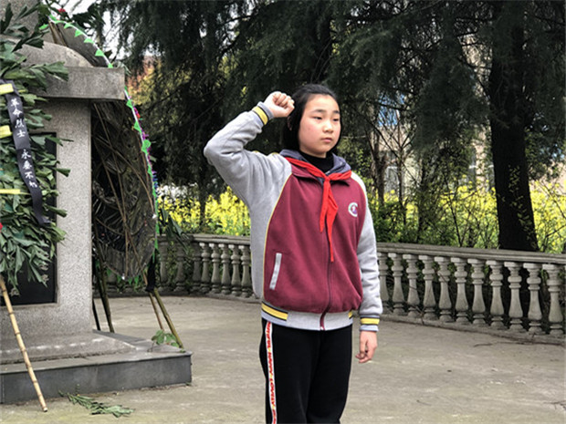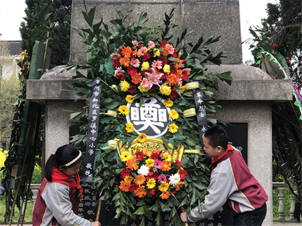 青山处处埋忠骨,苍松翠柏照英雄。在清明节前夕,为了悼念烈士,缅怀先烈的丰功伟绩,教育队员继承革命先烈光荣,弘扬民族精神,加强爱国主义教育,4月2日,罗溪中心小学少先队大队部组织优秀少先队员们开展了清明节扫墓活动。 少先队员们穿戴整齐,佩戴红领巾,排着整齐的队伍从学校出发,怀着对烈士无限崇敬的心情来到汤庄烈士纪念碑前,庄严肃穆的悼念活动开始了。在雄壮的《国歌》、激昂的《我们是共产主义接班人》歌声中,少先队员代表向烈士墓敬献花圈,全体师生向烈士鞠躬默哀。辅导员杨老师向队员们讲述英雄故事,教育队员们珍惜幸福生活,树立远大理想,发奋读书,掌握本领,并带领全体队员宣誓,将扫墓活动推向了高潮。“我热爱中国共产党,热爱祖国,热爱人民,好好学习,好好锻炼,准备着:为共产主义事业贡献力量!”少先队员们的铿锵宣誓在烈士碑前空荡气回肠,响彻云霄。整个过程中,队员们一扫往日的喧闹、嘻戏,静静的肃立着,细心聆听,深刻领会。最后,全体师生排着整齐的队伍,绕墓碑一周,并深深鞠躬,表达对烈士的敬意与怀念。 这次活动朴素庄严,肃然有序,不仅缅怀了烈士,祭奠了英灵,更是一堂生动深刻的爱国主义教育课, 激励着队员们传承先烈遗志,发奋读书,掌握本领,用实际行动来告慰青松下长眠的烈士,争做当代好少年!(撰稿:杨继芬 摄影:毛如月 审核:卢庆平)