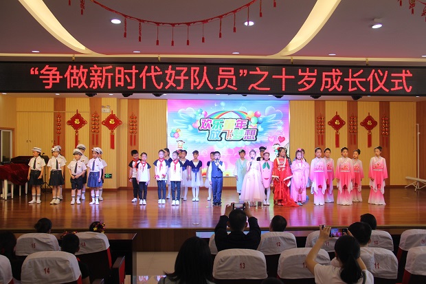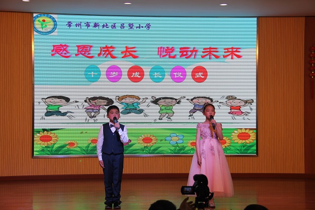 五月,携一缕浅夏的芬芳,凝一段温暖的情愫,裹着特有的浓郁春色,蕴润着诗意的童年。5月14日,常州市新北区吕墅小学“感恩成长·悦动未来”十岁成长仪式在报告厅隆重举行。学校领导、三年级全体队员以及家长一起见证了队员们的成长。 第一篇章 忆成长 许心愿 十岁,像鲜花一样美好,像黄金一样珍贵;十岁,洋溢着童年的欢笑,浸润着成长的喜悦。队员们在校园中成长,在活动中收获。三年小学生活,大家过得精彩而难忘,你看,为了让队员们更好地体会成长的意义,学校组织开展了十岁成长仪式系列活动——包馄饨、做汤圆,让队员们感受到实践的快乐。为了增进爸爸妈妈和孩子的感情,学校举行了共育成长林、亲子运动会等活动,农趣园里、运动场上队员们和家长们留下了珍贵的成长记忆。今天,全体师生和家长们带着激动的心情,再次回顾多彩而丰富的校园生活,大家在影像中寻找过去的自己,回味成长的喜悦,感恩岁月,感恩学校,感恩自己。 第二篇章 念恩情 展风采 十年成长,母爱似水,父爱如山,队员们的点滴进步都离不开爸爸妈妈的呵护,孩子永远是父母心中最深的牵挂。在这个重要的日子里,爸爸妈妈把对队员们的期盼、叮嘱写进了信里,队员们呢,也把自己的成长悄悄话写给了爸爸妈妈,交换阅读,交换心情。三(2)中队於若曦队员的爸爸用深情的语言诉说着他对女儿的祝福和期盼。三(3)中队的殷悦队员则用调皮的语气告诉爸爸妈妈:我已长大,请给我更多的自由空间,我会发展得更好,飞得更高。 情,入了眉眼,温情脉脉;意,融于心间,爱意满满。春风捎来父母饱含情意的爱的礼物,队员们在惊喜中打开礼物,把真挚的感谢之情化为一个大大的拥抱,献给最最亲爱的父母。 十岁的天空多晴朗,十岁的阳光多灿烂。在这快乐的时光里,队员们尽情歌唱,放肆舞蹈。三(1)中队的队员满怀激情,跳起了韵律操《快乐出发》。校合唱队则给大家带来了小合唱《爱是我的眼睛》,队员们在歌声中感受到了爸爸妈妈爱的凝视。三(2)中队的队员把环保理念植入了Fashion Show中,让大家感受到了绿色、低碳的重要。三(3)中队用清亮的歌声唱响了《追寻》,梦就在前方。学校竹笛社团的队员们给大家带来了《我是一个兵》,这是嘹亮的希望之声,引领同学们不断前进…… 第三篇章 向未来 立志向 十岁的你,笑靥如花儿绚烂;十岁的我,歌声似泉水喷涌;十岁的我们,像蜕变的蝴蝶振翅高飞。今天,我们立下成长誓言:做一个品正好少年!明天,成就一个大大的梦想。徐志强校长代表学校诚挚祝福队员们的成长,他表示学校会是队员们前进的助推器,更期望队员们在吕墅小学更好、更快地发展,根植自己伟大的童年梦想,追寻梦的方向……队员们坚信,他们在辅导员的帮助下、关爱中会更加幸福地成长。 你看,十岁的烛光已经点燃,你听,十岁的生日歌曲已经响起,生日蛋糕已经在舞台中央。十岁,是人生的里程碑;十岁,也是崭新的起跑线,大家一起唱响《生日快乐》歌,祝福自己,祝福年华,祝福未来!最后,队员们牵起爸爸妈妈的手,一起走过成长门。伙伴们,让我们在这美好的时光里一起生长吧! …… 十岁华丽落幕,明天更加灿烂。心怀感恩,逐梦远航!(撰稿:王华 摄影、审核:徐亚红)