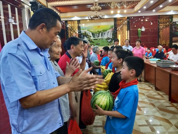 端午节是我国有着悠久历史的传统节日,其文化价值影响广泛,意义深远。过端午节还和敬老孝亲等优秀的传统习俗息息相关。在今年端午节来临之际,安家小学大队部组织少先队员代表来到安家敬老院开展“浓情端午节,爱心献老人”寻访活动。 少先队员们来到敬老院,为老人们献上了水果和粽子,向他们表达真诚的节日祝福。接着队员们围绕在老人们身边,学习非遗美食——粽子的包法。老人们耐心地教,队员们仔细地看,认真地学,粽叶飘香间,古老的民俗在生根,优秀的文化在传承。最后,队员们为安家敬老院的老人们表演了精心准备的文艺节目,老人们沉浸在浓浓的幸福之中,临走时,许多老人还走过来抚摸着队员们的头温情送别,场面甚是感人。 安家小学大队部组织本次活动,旨在传承历史,弘扬文化,营造文明祥和的节日氛围,让少先队员真正感受传统文化的魅力,将中华民族敬老孝亲的优秀基因在祖国下一代的心中扎根。 (撰稿:印亚宏 摄影 审核:苏亚刚)