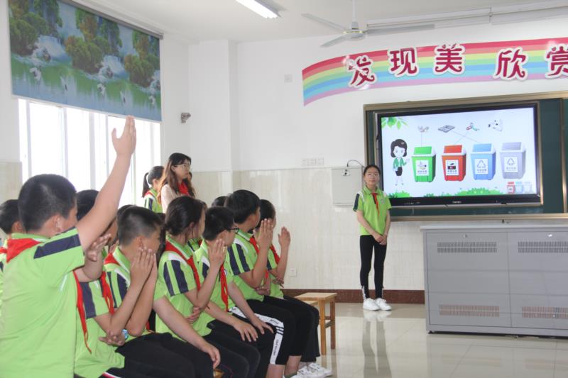 6月25日,吕墅小学五(3)中队的队员们在辅导员宋毅老师的组织下,有声有色地开展了少先队活动《践行垃圾分类,争做新时代文明少年》。 活动一开始,出旗,敬礼!铿锵有力的出旗曲响起。入座后,一首关于环保的《二十四字歌》拉开了活动的序幕。在小主持人声情并茂的主持中,各小队分别展示了他们的风采:第一小队的队员们收集了生活周边乱扔乱倒垃圾的现象,拍成照片,形象地说明了垃圾乱倒的后果。通过小品《地球妈妈生病了》以及对小品谈感受,队员们充分意识到垃圾乱放的不良后果。第二小队从学校生活入手,让队员们了解我们学校队员们掌握垃圾分类知识的情况,明确我们学校大垃圾桶种类和中队小垃圾桶分类放置情况。第三小队是介绍垃圾分类知识,使队员对不同颜色垃圾桶有明确了解,并且知道怎样放置相应的垃圾。第四小队为队员们送来日本进行垃圾分类的视频,用诗歌和赠卡片的形式,使队员们践行垃圾分类更有了主人翁意识。最后全体队员在退旗曲中结束了本次少先队活动。 这次中队活动内容非常符合时代要求,活动形式也是队员喜闻乐见的,有生动形象的视频,有来自身边的照片,有队员的小品表演,还有充满感情的歌声……在不知不觉中,队员们明白了保护环境要从垃圾分类做起,学到了如何垃圾分类的知识,更深刻认识到垃圾分类的重要性。(撰稿:宗晓燕 摄影:李晗 审核:徐亚红)