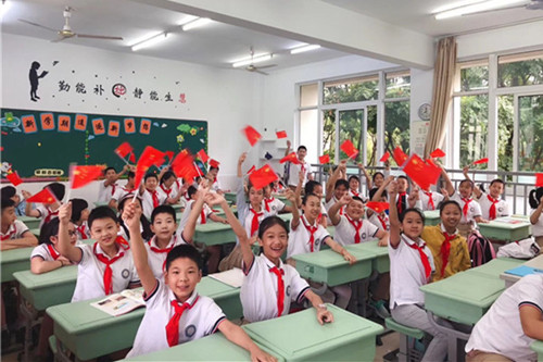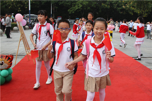 残云收夏暑,新雨带秋岚。当九月的阳光洒进校园的每一个角落,熟悉的铃声再次在耳畔响起,百草园小学的全体辅导员和少先队员又迎来了播种希望的新学年。 9月2日,清晨,静谧祥和的校园中,红领巾礼仪队的队员们早早来到了校门口,迎接百草娃们的返校;辅导员们则再次走进教室查看各项准备工作,期待新学年的重逢。早在两天前,辅导员和家长志愿者就已经在为这一次的相聚忙活起来了:窗明几净的教室、整齐无误的崭新书本、精致温馨的班级布置……与其说是准备,不如说是等待,等待教室充满生机勃勃的一刻,等待欢声笑语的到来。 伴随着广播里欢快的歌声,校园里渐渐热闹了起来,百草娃们带着憧憬,迈着轻快的步伐走在祖国印记的红毯大道,感受祖国70年的腾飞。笃志好学、博文约礼、品正致远、向善怀德、慎思明辨……逐梦彩虹跑道上寄托辅导员们对百草娃的希望。 告别多彩暑假,迎来忙碌金秋,新学期有新挑战,也孕育新的憧憬与希望。相信在百草园小学全体百草人的共同努力下,一定能在鲁迅先生笔下的这片美丽的乐园里描绘出更加绚丽的未来!