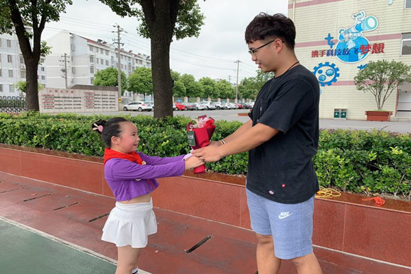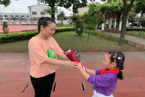 9月的天空飘逸着金秋收获的气息,教师节踏着轻盈的步子缓缓而来。9月10日上午,新北区汤庄桥小学举行《师恩难忘》主题活动。 首先,进行了庄严的升旗仪式,在嘹亮的国歌声中,五星红旗冉冉升起,全体师生肃立,向国歌敬礼。两位同学分享了国内外尊师的故事,千言万语诉说不尽对老师的爱,诗朗诵《献给老师的歌》更让全体老师为自己辛勤付出而感到自豪。接着,同学们发出呼吁,从小事做起,专心听讲,认真作业,团结互助,以此带给老师节日的快乐和欣慰。 最后,少先队员代表为老师们鲜花。无需什么赞美之词,一句“老师,节日快乐!”,一个深深地鞠躬已经代表万语千言。 老师的言传身教让孩子懂得了尊师重教的真谛,榜样的力量更让孩子们感受到师恩代代传承的重要性。