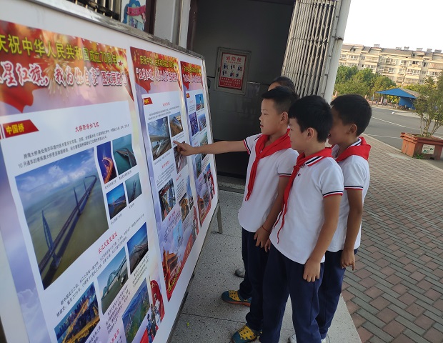 另外,队员们利用自己的下课时间一起参观了“五星红旗,我为你自豪”校园图文展览,队员们一边静静欣赏一遍细声诉说着祖国70年来的巨大变迁,感受着祖国的伟大变化、日益强大!相信通过此次少先队活动课程,我校全体队员们一定能树立伟大理想,从小学习做人、从小学习立志、从小做起、接受帮助,认真贯彻与执行好习近平主席对少年儿童提出的十六字要求。