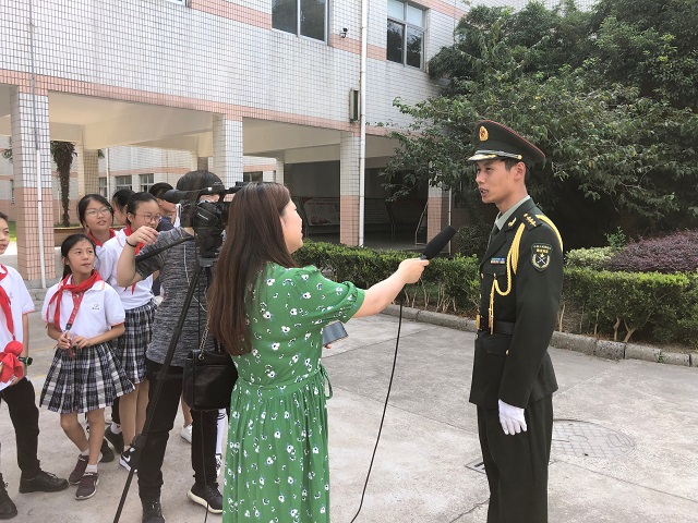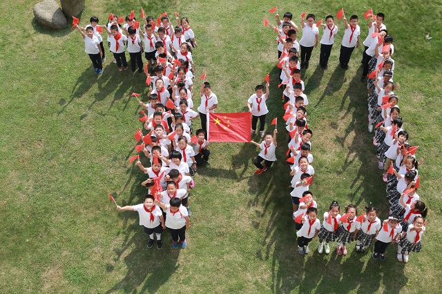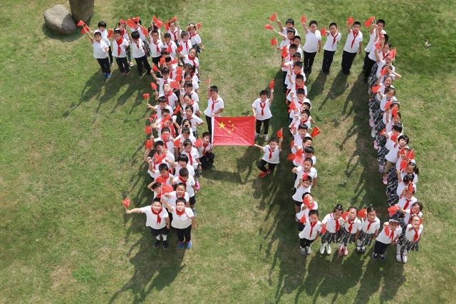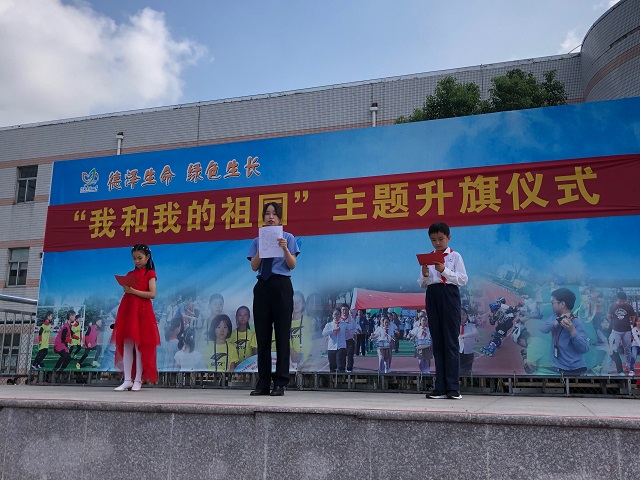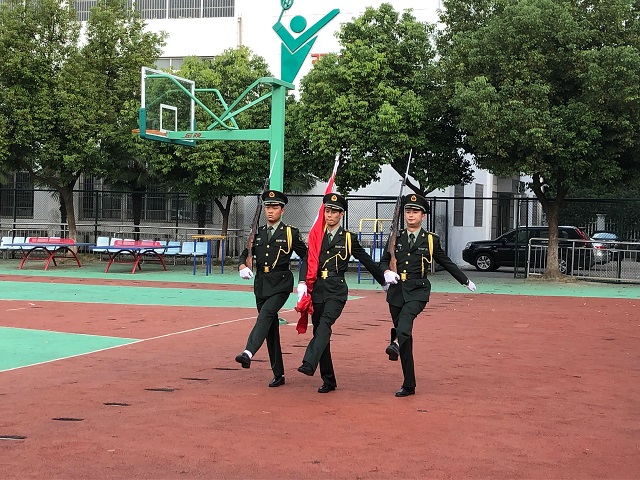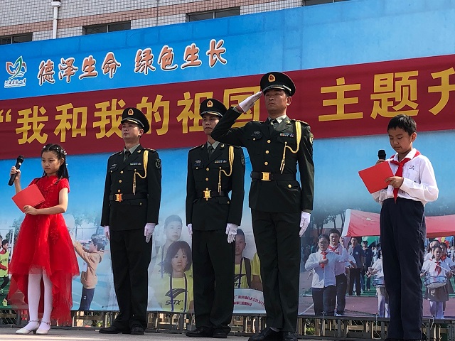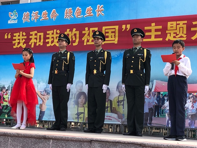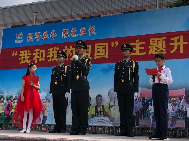 为了庆祝新中国成立70周年,培养全校师生爱国情怀,弘扬爱国精神,增强民族自豪感。9月30日上午,河海实验小学全体师生齐聚操场,隆重举行了“我和我的祖国”主题升旗仪式。 上午九点五十,升旗仪式正式开始。活动特别邀请了曾在天安广场参加升旗仪式的三名解放军,由他们组成的国旗护卫队在鼓号队激扬的音乐中,迈着坚定的步伐护送鲜艳的五星红旗入场。当高亢激昂的《义勇军进行曲》响起,升旗手振臂一挥,鲜艳的五星红旗迎风展开,随着雄壮的国歌声,鲜艳的五星红旗冉冉升起。全体海小师生肃然而立、屏息凝神,一同面向国旗行队礼,满怀着对党和祖国的无比忠诚与深情厚谊,高声唱起国歌。海小学生用铿锵有力,振奋人心歌声表达对祖国的敬仰,对祖国的热爱。 随后三位解放军带领大家回顾了他们的经历,抒发了内心对祖国对热爱。他们用热血铸就的爱国情怀、民族气节、英雄气概,构成了一个民族的精神坐标! 紧接着新北区检察官在国旗下也教导孩子们:弘扬爱国之情,树立爱国之志,少年强则国强,中国强则人民傲! 最后,全体师生每人手上挥舞着一面鲜艳的五星红旗,把对祖国的声声祝福化作律动的音符,一同唱起了《我和我的祖国》,在深情激昂的音乐氛围中,洪亮的歌声响彻整个校园。 (撰稿:陈丽娜摄影:丁晓俊、乔路编审:丁晓俊)