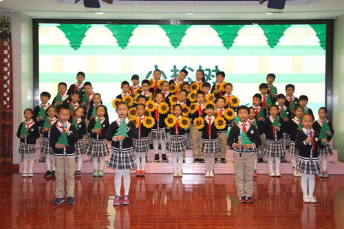 声染年华,乐动心声。为丰富队员课余文化生活,营造和谐向上、爱党爱国的校园文化氛围和艺术教育环境,10月30、31日,百草园小学举行了百草讲坛第十期——“童声里的中国”歌咏比赛。 比赛在二至五年级进行,各中队自选一首歌曲参赛。赛前音乐老师和中队辅导员利用课余时间认真给队员们进行排练,并且根据各中队的中队文化和所选歌曲特点排练队形和动作、设计服装头饰和道具。 比赛精彩纷呈,各具特色。每个中队经过前期的精心编排与训练之后,带来了各具特色的歌唱表演。低年级的队员虽然稚气未脱,但是神情专注,声音嘹亮,展示了童真可爱的模样;中高年级队员结合舞蹈、武术,再加上创意满满的道具,给人带来一场视听盛宴。《我的中国心》唱出了孩子们对祖国母亲的无限热爱之情;改编儿歌《小松树》表达了百草娃们对学校的无限喜爱;《学习歌&少年中国说》诠释着中国少年自强不息的风骨。孩子们灿烂的笑脸,投入的神情,充分展现出了新时代少先队员健康活泼和积极向上的风貌。一首首健康向上、积极进取、热情洋溢的爱国歌曲在校园内久久回荡。 此次百草讲坛不仅丰富了队员的课余文化生活,而且体现了良好的精神风貌和集体凝聚力,进一步推进了学校校园文化建设,营造出积极向上、热爱祖国的校园文化氛围,是少先队员给祖国最真挚的献礼!