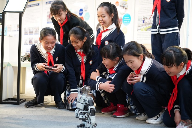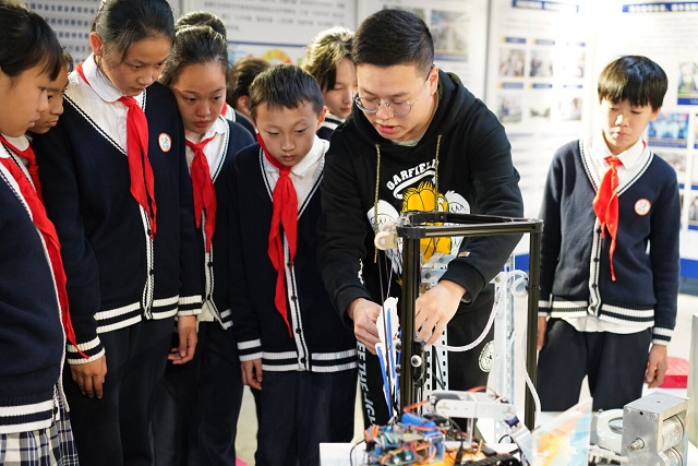 金秋时节,满地翻黄银杏叶。2019年11月13日,新北区河海实验小学六(1)班的甜蜜小队,在大队辅导员丁老师和中队辅导员时老师的带领下,来到常州机电职业技术学院进行参观活动。 跟随机电学院王老师的脚步,队员们走进了计算机系,被各种智能机器所吸引,对精巧的3D打印作品赞叹不已。在学院大哥哥指导下,队员们还现场操作了人形机器。在创意设计学院,大家看到了大学生们极具创新力的设计图和模型。电竞体验中心的展示,队员们看得津津有味。令队员大开眼界的还有机电学院的大型图书馆,分三个楼层,藏书量达到了几千万册。徜徉书海,队友们不亦乐乎。 通过此次参观实践体验活动,队员们学到了许多的科学知识,也增长了见识,培养了对科技的兴趣和爱好。(撰稿:时娟芳摄影:时娟芳编审:丁晓俊)