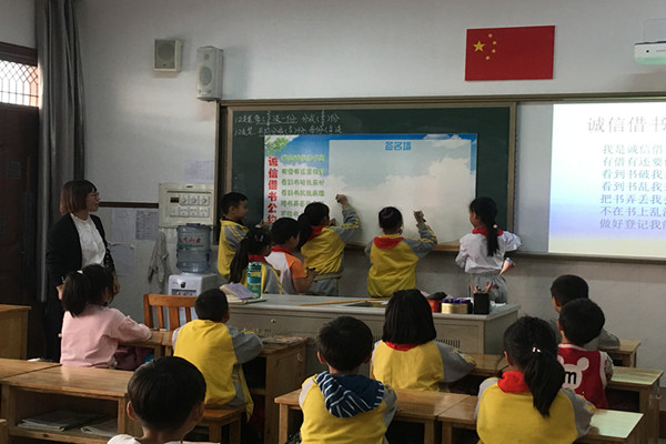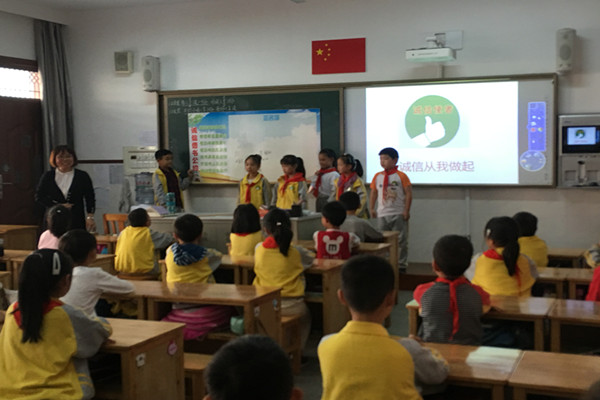 12月17日,新北区汤庄桥小学二(4)中队举行了《诚信伴我成长》主题队会。本次队会以队员为主体,在辅导员的精心指导和队员们的认真排练下,活动取得圆满成功。这次活动的主要宗旨是让队员们了解诚信的意义与价值,树立诚信意识;懂得“诚信乃立身之本”的道理。 本次中队活动形式多样,内容丰富多彩。有生动的寓言故事、有诚信拍手歌谣、还有诚信情境问答、诚信格言大比拼等游戏活动。队员们在活动中深刻领悟了诚信的内涵,加强了诚信的内心体验。辅导员丁老师还以建立中队“诚信书吧”为契机,引导队员们把诚信的品质落实在班级生活中,活动最后,队员们郑重写下自己的承诺。 通过本次活动,培养了队员们“诚信”的优秀品质,他们纷纷下决心:要从自我做起,从身边的每一件小事做起,在家做一个诚信的好孩子,在校做一个诚信的好学生,在社会做一名诚信的好公民。