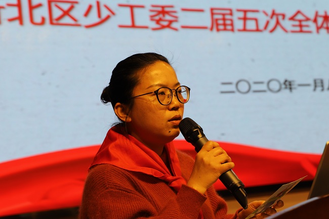 陈俊玮同志作了题为《深化品牌内涵,建强“新北模式”,积极培育努力奔跑的新时代追梦好少年》的工作报告,同时交流了2020年的工作思路,并对各基层少先队提出三点希望和要求:一是思想政治引领很重要,要在新北广大的少年儿童心中埋下全心全意为人民服务的红色种子;二是路径方法创新很必要,把抽象的概念转化为具体生动的人和事,将思想政治引领和品德教育春风化雨、入脑入心;三是争取资源合力很有效,为少先队工作发展创造更好条件,努力开创中国特色社会主义新时代少先队事业新局面。
