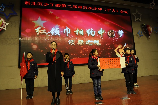 共青团新北区委书记秦浩杰,共青团新北区委副书记、区少工委主任陈俊玮,新北区教研室副主任、区少工委副主任何耀平,以及区第二届少工委委员、区各小学分管副校长、大队辅导员共计80余人参与了本次会议。会议由新北区少先队总辅秦琳老师主持。