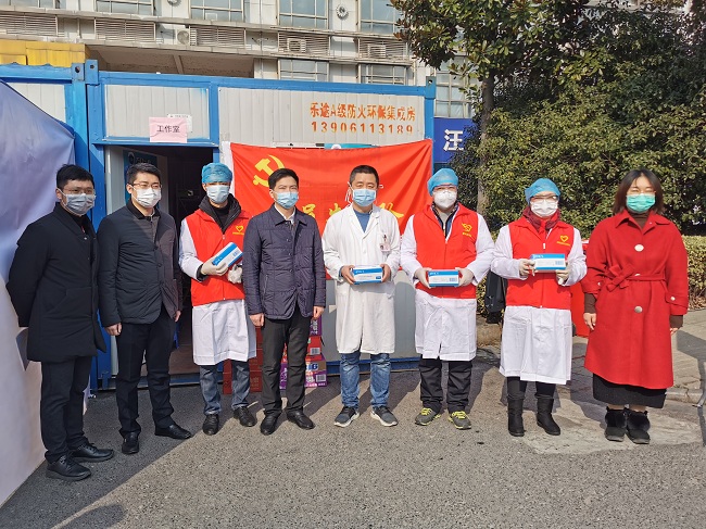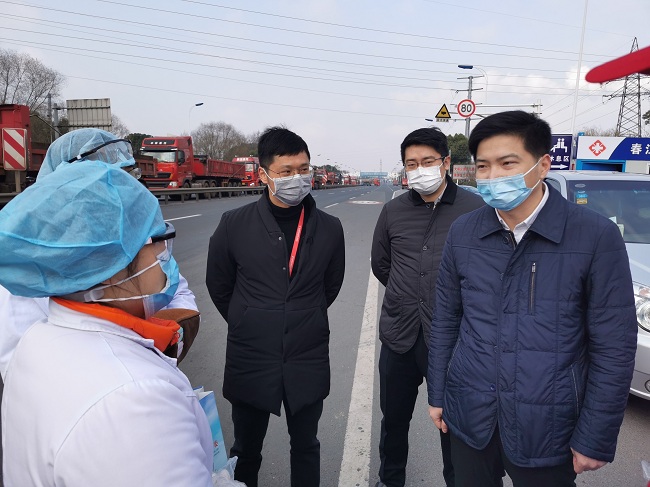 2月5日上午,团市委副书记张博赟、挂职副书记庄铠一行走访慰问了新北青年防疫志愿服务队S340无锡常州交界(龙虎塘)卡口、G346无锡常州交界(春江)卡口的志愿者们,团区委书记秦浩杰陪同慰问。