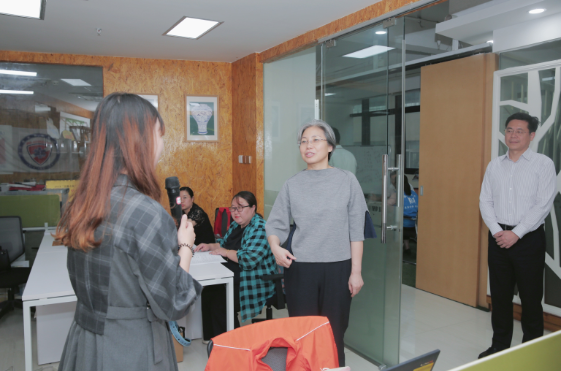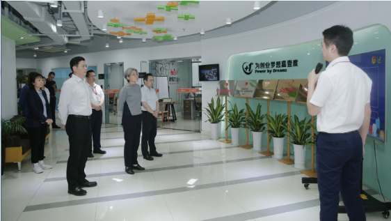 在嘉壹度青年众创空间,汪鸿雁书记一行实地参观并听取了团区委关于嘉壹度品牌理念、发展历程、运营架构以及在青年双创领域的服务力、贡献度等情况的汇报。汪鸿雁书记还与多个入驻的青年创业团队亲切交流,饶有兴趣地了解各项目的基本情况、商业模式、发展状况等,并送上了暖心的鼓励。