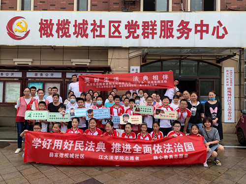 近日,橄榄城社区团总支联合“青春有爱”大学生志愿者、薛家小学小小善真志愿者,家、校、社携手开展了一系列让民法典走进百姓生活的宣传和实践活动。