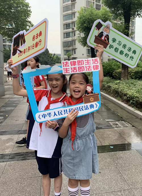 共创法制社区,我是小小宣传员。7月20日上午,当天气温很高,大小学生志愿者们在橄榄城社区门口向居民发放《民法典》倡议书和宣传资料,并手举《民法典》宣传语录,引导社区居民争做守法善良的好公民,守护好你我他,做更好的自己。做到不高空抛物、不乱扔垃圾、自觉恪守契约精神、不侵犯别人隐私权,自觉弘扬公序良俗,共同营造和谐、安定、有序的生活环境。