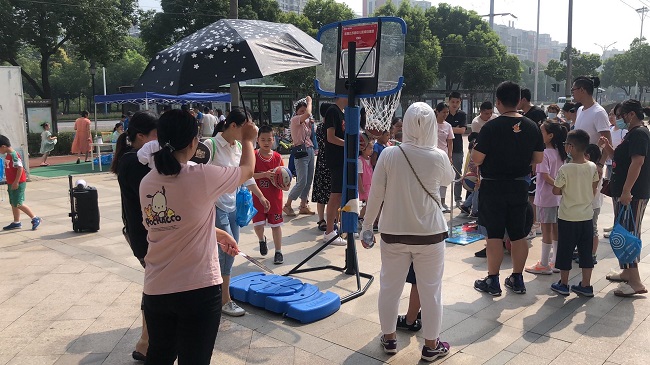 篮球作为青少年们最喜爱的一项运动之一,因连日的暴雨很多青少年无法参加该项运动,7月27日上午天气转晴,新桥镇妇联、新桥镇团委、望湖社区以此为契机举办了青少年趣味篮球比赛,从而丰富青少年们的课外娱乐活动,培养孩子们积极向上的进取精神,让雨季中青少年们有一个可以挥发汗水的舞台。 本次比赛活动针对少年儿童的发展水平,同时考虑了游戏的趣味性、娱乐性、技巧性等,划分了三个项目组:“愤怒的小鸟”,学员把篮球放在弹弓上,家长固定住弹弓,将球弹出去,投进篮筐的即可通关;“嘿,接球”,家长后背背着一个框,学员在指定距离,将球投进筐中;“秀出风采” 学员运球以S型方式绕过人型玩偶,在指定位置用双手胸前击地传球方式和双手胸前平传球方式传球入洞内。比赛过程异常激烈。周围的家长作为啦啦队也积极参与,大家热情高涨,现场欢呼声、加油声、呐喊声声声震天,活动中孩子们奋力争先,欢笑声、呐喊声、加油声洋溢整个球场。整场比赛,孩子们付出了汗水,体验了运动的快乐,释放了爱玩的天性。 望湖社区希望通过举办本次活动使青少年可以凭借这个平台更好地参与篮球运动,培养健康生活习惯,进而更好地推广体育运动,营造全民运动的良好氛围,为社区体育运动发展打好坚实基础。
