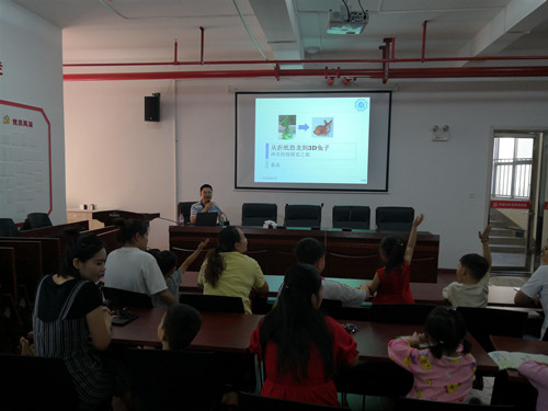 为了提高小朋友们的科学知识,拓宽视野和兴趣,2020年8月19日,东坡社区团支部邀请河海大学副教授童晶来给辖区内儿童开展了一堂神奇的视错觉之旅讲座,30余名社区大小朋友参加了此次讲座。 讲座由河海大学副教授童晶为大家授课。童晶,2003年、2006年于山东大学数学与系统科学学院获得本科与硕士学位。2006年进入河海大学常州校区工作,2013年博士毕业于浙江大学计算机辅助设计与图形学国家重点实验室,现为河海大学物联网工程学院计算机系教师,授课经验丰富,深受大家欢迎。 讲座中,童老师从折纸恐龙开始,到3D兔子,展示的各种错觉让人大开眼界,很多视错觉只是因为大脑里的潜意识造成的。例如纸恐龙扭头错觉,童老师以此为延伸与大家探讨了还有哪些好玩的错觉,一起分析为什么会有错觉及错觉的原理是什么,并结合实际讨论能不能在现实里实现这种原理的错觉。 在场的大小朋友们都希望此类讲座能多多开展,开拓大家眼界,增长大家知识。讲座结束后,童老师还鼓励孩子们能自己动手制作纸恐龙,可以更深入地了解错觉与错觉的原理。