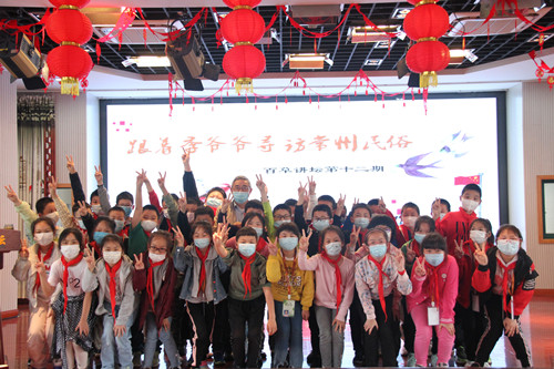 江苏常州有着2500余年的历史,人文荟萃,古迹众多,是历史的文化古城。2020年5月9日下午,第十二期百草讲坛如期开展。百草园小学三(2)中队和二(5)中队的少先队员齐聚四楼报告厅,共享季全保先生带来的一场关于常州民俗文化的盛宴。 季全保享有常州市美术家协会理事、江南国画院副院长、常州民俗研究会副会长、民俗专家等诸多美誉。他的主要代表作有:《常州老房子系列》、《江南水乡系列》等。他出版有:《岁月留痕老房子作品集》、《季全保书画集》、并有《话说常州》、《百年常州》等系列连环画作品。他的讲座内容丰富,内涵深刻,带着大家从一幅幅民俗画间探索常州的传统文化,寻寻老常州的跟脚。 在季爷爷和队员们的亲切交谈中,讲座也就此拉开了帷幕。讲座内容呈现为四个方面:传统民俗与市井风俗的分类,我们的节日岁月节令话风俗,民俗活动里的老游戏与体验和江南民俗风情与市井老手艺。季爷爷亲切和蔼、幽默风趣,以近乎聊天的方式道出了民俗的真情真味,民俗背后隐含的文化内蕴。讲座过程中,他也非常注重与队员的互动以及教育,与队员们们一问一答,气氛热烈,并将《岁月留痕寻访老常州》系列明信片作为互动奖品赠给了参与互动的队员们。 讲座的时间过得很快,还没来得及享受,就要和它道别了。季爷爷临走的时候,队员们涌上去和他合影。这场讲座生动有趣、气氛热烈,唤起了队员们对于常州、对于中华民族的归属感,而且增强了他们传承、发扬民俗文化的责任感和使命感。 (撰稿:徐姗姗 摄影、审核:陈楚阳)