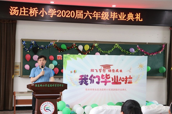 树头的花早已悄然飘落,绿不觉间爬满了枝条,时光总是如此匆匆,又逢一年毕业季。7月14日,汤庄桥小学2020届六年级毕业典礼在报告厅隆重举行,参与典礼的有校领导,毕业班辅导员老师和全体六年级毕业生。 活动伊始,鄂汉东校长给全体毕业生送上诚挚的毕业寄语,表达殷切的希望。之后是校领导和任课老师为优秀毕业生颁发荣誉证书,并合影留恋。优秀毕业生代表发言,孩子们充满朝气的声音里是对母校和老师的不舍,对未来的渴望。接着毕业生小演员们表演了一个又一个精彩的节目:有动人心弦的歌曲,有活力四射的街舞,有令人捧腹大笑的相声小品,有古色古香的汉服走秀,还有紧张刺激的魔方表演……一曲现场钢琴演奏《最美的期待》将典礼带入高潮,同学们在优美音乐声中回忆在校的点点滴滴,不禁泪潸潸,满怀感恩之心和离别之情。最后,周建忠和陈如铁主任为毕业生们拳拳寄语和殷殷祝愿。 辅导员老师和队员们回到教室领取毕业证书,大家互相留言寄语,拍下了一张张可爱的笑脸。六年的时光,队员们经历了成长和蜕变,在以后的人生的道路上会更加坚强乐观,用智慧、毅力和勇气,征服前途的艰险,定会拥有一个最美好的未来!