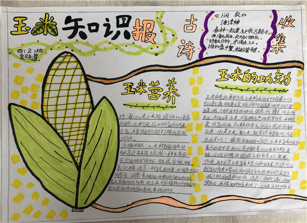 玉米,那一个个调皮的小精灵,带着人们的喜悦,吸收着甘甜的雨露,在绿皮的包裹下,丰收啦!为了丰富队员们的生活体验和情感体验,罗溪中心小学组织队员开展了“我和玉米有个约会”为主题的系列实践活动。 一、知识探究篇——了解玉米 成熟的玉米金灿灿的,她咧开了俏丽的嘴巴,笑啊笑。这不,可爱的玉米笑得太开心,腰都弯啦!可爱的玉米呀,太惹人喜爱啦!这么可爱的玉米,她的形态有什么特征呢?玉米的生长过程是什么样子的?生长环境有什么特点?玉米主要分布在哪里?有怎样的价值……别急,别急,让我们到同学们制作的手抄报中去看看吧! 队员们通过前期在灵溪农场对玉米的生长进行了系列观察,综合老师的实地讲解,又进行了网上资料查阅,对于玉米的了解可真多啊!看,他们在讲台上图文并茂地介绍着对玉米的了解。 二、实践活动篇——掰玉米 今天队员们又一次走进了灵溪农场,农场里的这些玉米像是一个个小战士,整齐的方队,横竖成行。鼓囊囊的身体、红红的玉米须,墨绿的玉米秆,都在告诉队员们玉米成熟啦!队员们迫不及待地去掰玉米,左手抓住玉米秆,右手紧握玉米棒子,使劲一甩,“咔嚓”一声,便掰下来了,“咔嚓、咔嚓……”队员们掰得可带劲啦!拿着圆鼓鼓的玉米棒子开心极了。 三、 课外实践篇——玉米美食 周末,队员们亲自动手用玉米做原材料做起了美食。让我们一起欣赏一下队员们制作的一道道美食吧!松仁玉米、玉米烙、玉米糊、玉米蔬菜沙拉、玉米炖排骨……队员们把自己亲手制作的玉米大餐作为礼物献给自己最亲爱的爸爸妈妈,向爸爸妈妈表达自己最真诚的爱。 四、课外创意篇——百变玉米 玉米除了能做美食,还能做什么呢?瞧!队员们用他们的巧手将玉米做成漂亮的玉米拼盘;用玉米皮折出美丽的鲜花,用玉米须做成温暖的鸟窝……一份份精彩的创意在孩子们的手中呈现。 五、回味篇 ——巧手写玉米 通过这次对玉米的观察、了解、采摘和品尝,队员们学到了很多,他们用文字将这次的经历展示出来,我们一起去看看吧!(撰稿:柳国良 汪洁 摄影:学生家长 审核:谢红琴)