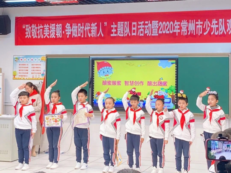 2020年11月4日,在这丰收的季节里,为引导少先队员们深入了解“决胜全面建成小康社会”的主要内涵和伟大意义,“红领巾寻小康•礼赞‘星’常州”主题活动暨2020常州市少先队观摩研讨活动(新北专场)在常州市新北区香槟湖小学隆重举行。本次活动由共青团常州市委、少先队常州市工作委员会主办,共青团新北区委、少先队新北区工委委员会、新北少先队名师工作室及新北区香槟湖小学联合承办。 开幕式后,来自新北区数十所小学的15位辅导员老师,带来了15堂精彩纷呈的少先队活动展示课。我校的辅导员邵凌云老师带领三(2)班小蜜蜂中队的队员们向全市的辅导员们展示了一堂别开生面的《点亮生命的“红”》少先队活动课。这堂课着力于队员们的思想引领,队员们传承红色基因,争当新时代好少年。