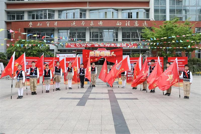 区教育局副局长、文体旅游局局长杨杰为红领巾党史宣讲团授旗。 蒋功伯指出,新时代学党史,一要明确成长正确航向,做有理想有抱负的接班人。二要立志成为栋梁之材,做有知识有本领的接班人。三要挺立风雨茁壮成长,做有自信有担当的接班人。把自己的成长进步、人生追求与国家的前途命运、与家乡的繁荣发展紧密相连,养成勤于学习、善于学习、乐于学习的良好习惯,从小培养坚韧不拔的性格,树立起新时代新北少年儿童健康阳光、乐观向上的良好形象,做新时代有理想、有担当的好少年。