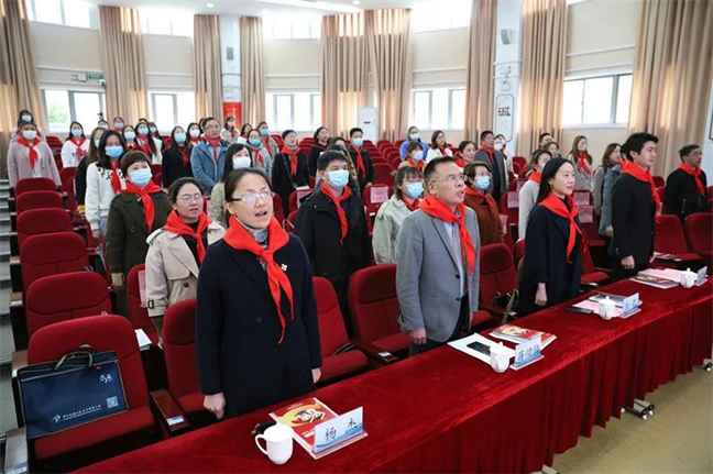 团区委副书记、区少工委主任陈俊玮在致辞中指出,区少先队工作要提高站位,党团队携手一起走,要把握形势,与时俱进勇创新,要着眼未来,深化协同共进发,团结、教育、引领广大少年儿童听党话、跟党走,传承红色基因、争做时代新人。