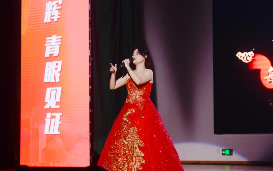 百年光辉,“青”眼见证。 常州工学院青年教师代表、毕业于俄罗斯格拉祖诺夫音乐学院的张璇现场演唱原创红歌《致家乡的烈士们》,追念在新北这片红色热土上为革命而牺牲的英雄。