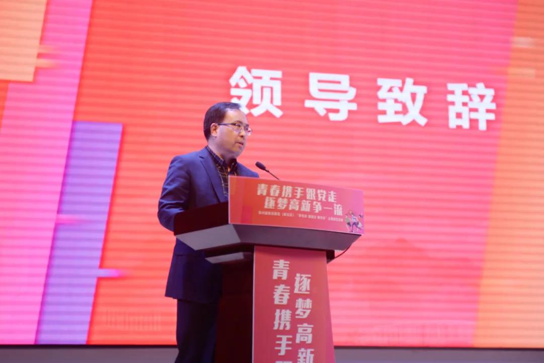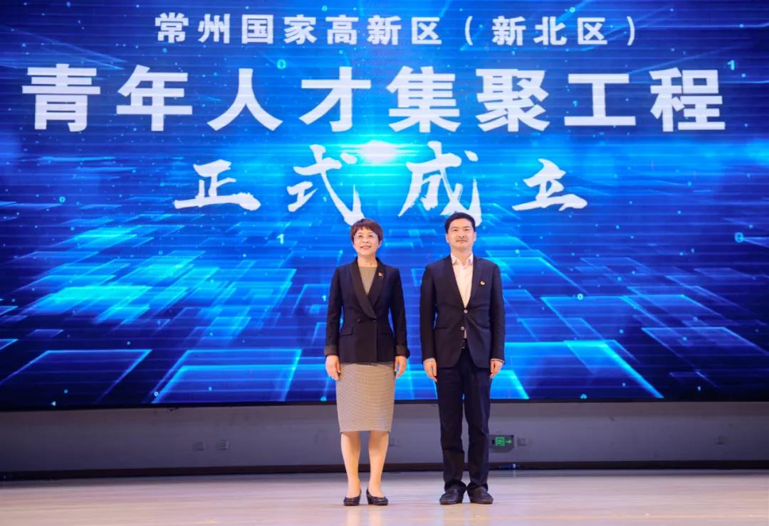 区党工委(区委)副书记吴小华和团市委副书记张博赟共同上台启动了常州国家高新区(新北区)青年人才集聚工程。