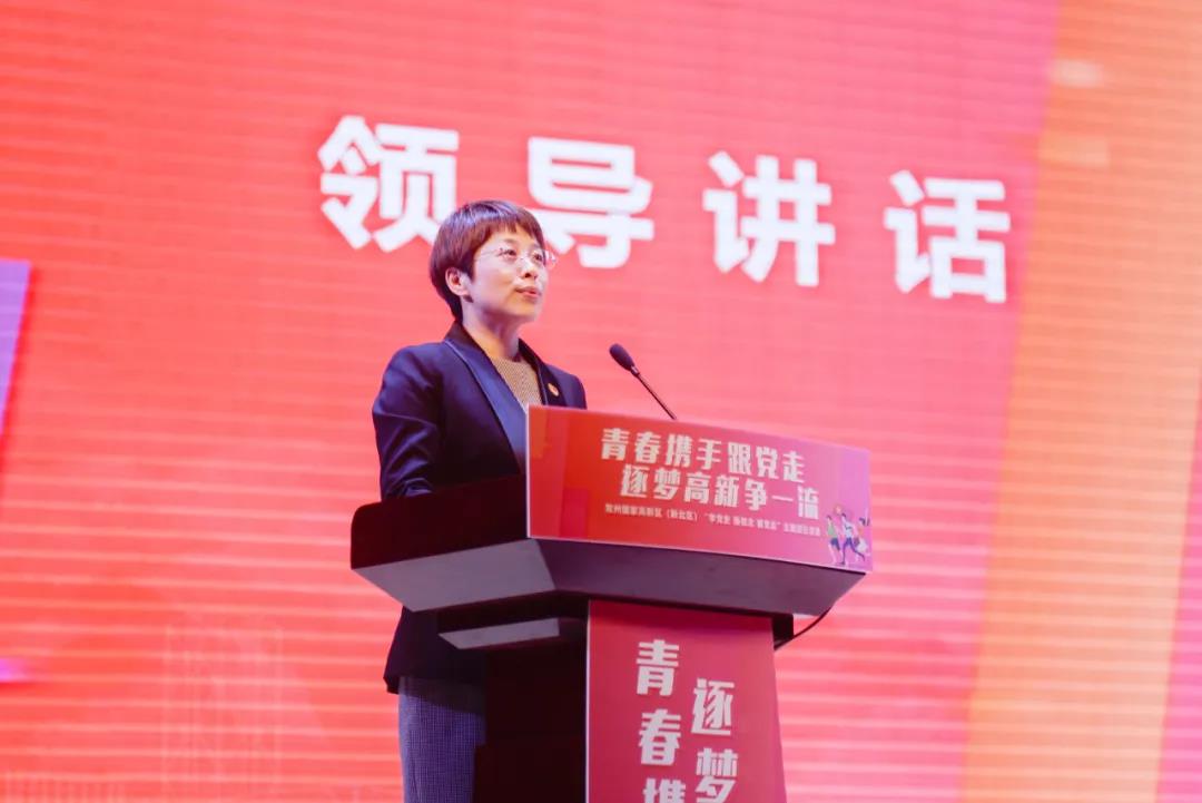 在五四青年节即将到来之际,4月27日,常州国家高新区(新北区)“学党史 强信念 跟党走”主题团日活动在常州工学院顺利举行。 区党工委(区委)副书记吴小华,常州工学院党委副书记王传金,团市委副书记张博赟,区党工委委员、区委常委、组织部部长封毅,区管委会副主任完利梅,区人大常委会副主任花震亚,区政协副主席徐红出席活动。区相关单位分管领导、各镇(街道)分管领导、辖区内各相关学校团委负责人、各商业综合体及本地线上平台相关领导、区青年工作联席会议成员单位联络员、区各直属团组织负责人、学生代表、各界青年代表等300余人齐聚一堂,共享青春盛会。