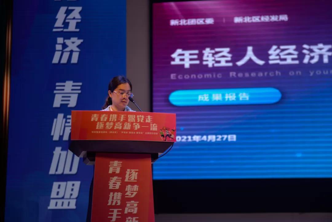 活力经济,“青”情加盟。 围绕区委、区政府高度关注的“年轻人经济”,团区委、区经发局和高校前期联合开展了相关调研,对全区青年进行画像。活动现场,团区委副书记朱菁围绕调研中的“年轻人经济”板块进行了成果汇报。