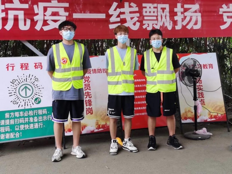 当问到姜禹对于这段志愿服务经历有什么感想时,他这样说:“这个暑假,原本渐渐平息的疫情又复杂起来,作为一名即将踏入社会的共青团员,我希望能尽自己一份绵薄之力去温暖我的家乡。同时我也一直相信助人自助的道理。在志愿活动期间,我需要和不同的人交流,要采用不同的方式、语气,要用合适的方式回应他们的关切。经过一段时间的锻炼,更加磨练了我的耐心,增强了我的细心程度,也提升了我沟通协作的能力。每每听到居民朋友们说出的一声声‘谢谢’,我便觉得这么多天的志愿服务格外有价值,更让我明确了自己的奋斗方向,我将继续弘扬志愿服务精神,为社会、为家乡贡献自己的青春力量。” 兄弟连心,战“疫”齐心。蒋杉、薛麒宇、薛钇三位返乡大学生合力组成了S122常州与镇江交界西夏墅卡口的抗“疫”兄弟团,他们三人从小学开始就是同学。打小就结识的哥仨每当寒暑假都会聚在一起做一些志愿活动。今年暑假,德尔塔病毒来势汹汹,他们毫不犹豫地加入青年突击队。
