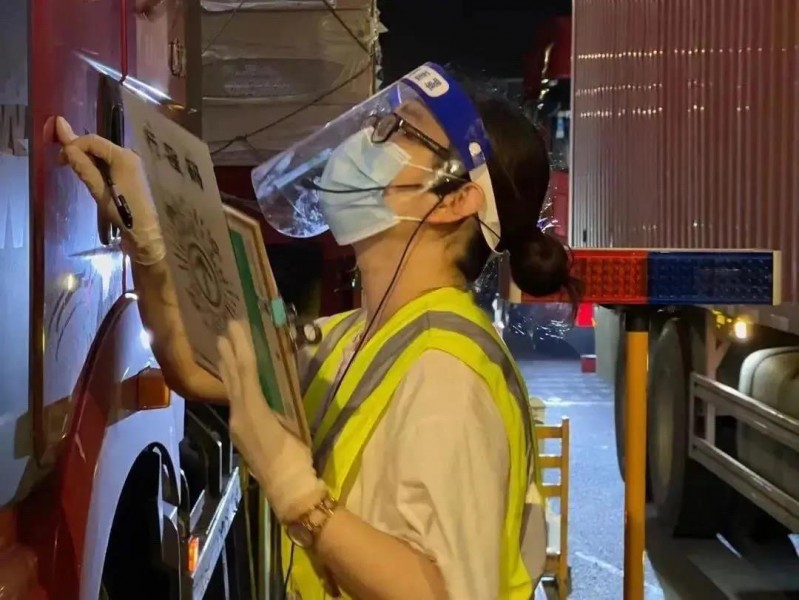 在与他们聊天的过程中,蒋杉这样说道:“疫情无情,人间有情。在卡口需要志愿者协助时,很多志愿者由于白天需要上班腾不出时间,作为暑期休息在家的大学生,我们这时必须挺身而出,扛起责任,为打赢疫情防控阻击战贡献我们的力量。”薛麒宇认为:“作为一名新时代青年,我很荣幸能加入青年突击队,结识了很多志同道合的朋友,这次的志愿服务也让我真正明白了‘家国情怀’的真谛。”最后,薛钇这样补充:“不管是在抗击疫情上,还是生活、工作、学习中,我们兄弟三个一直坚信‘兄弟同心,其利断金’,我们也一定会发扬当代青年不畏艰险、冲锋在前、无私奉献的精神,努力承担起社会责任。” 党员教师,双重示范。8月1日开始,新北区交通卡口处,穿着荧光黄背心认真工作的志愿者们格外显眼,党员教师殷陈佳就是其中的一员。她主动放弃暑期休息时间火速加入青年突击队,由于需要提高嗓音询问司机情况,她常常润喉糖含了一颗又一颗,口罩湿透了一个又一个,八个小时后脱下手套,手都捂皱了皮。