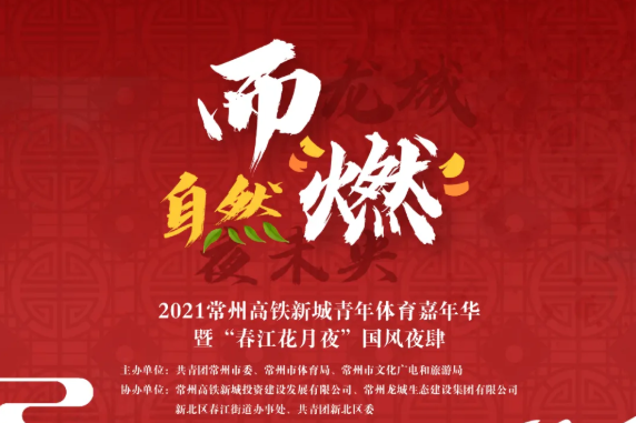9月15日晚,习近平总书记宣布:“中华人民共和国第十四届运动会开幕!”全运会比拼酣畅淋漓,北京冬奥会翘首以盼,全民健身浪潮热情高涨!“青年强则中国强,国运兴则体育兴!” ,为庆祝中华人民共和国成立72周年,龙城夜未央·自然而“燃”——2021常州高铁新城青年体育嘉年华暨“春江花月夜”国风夜肆将于10月1日正式开启。