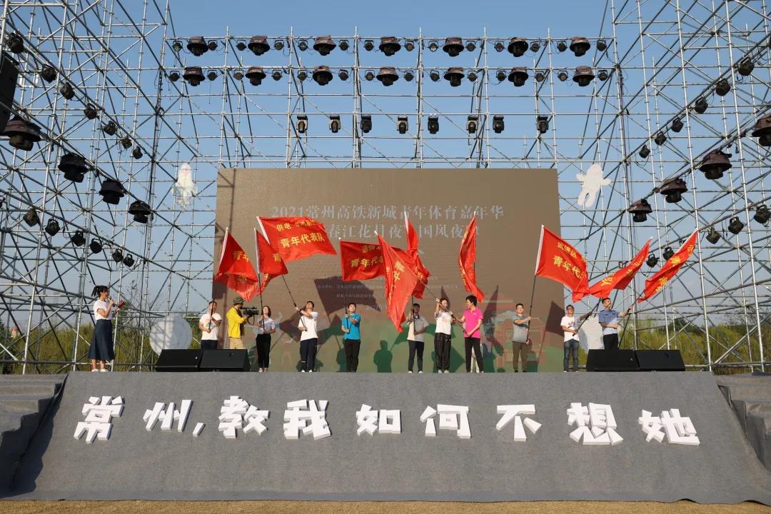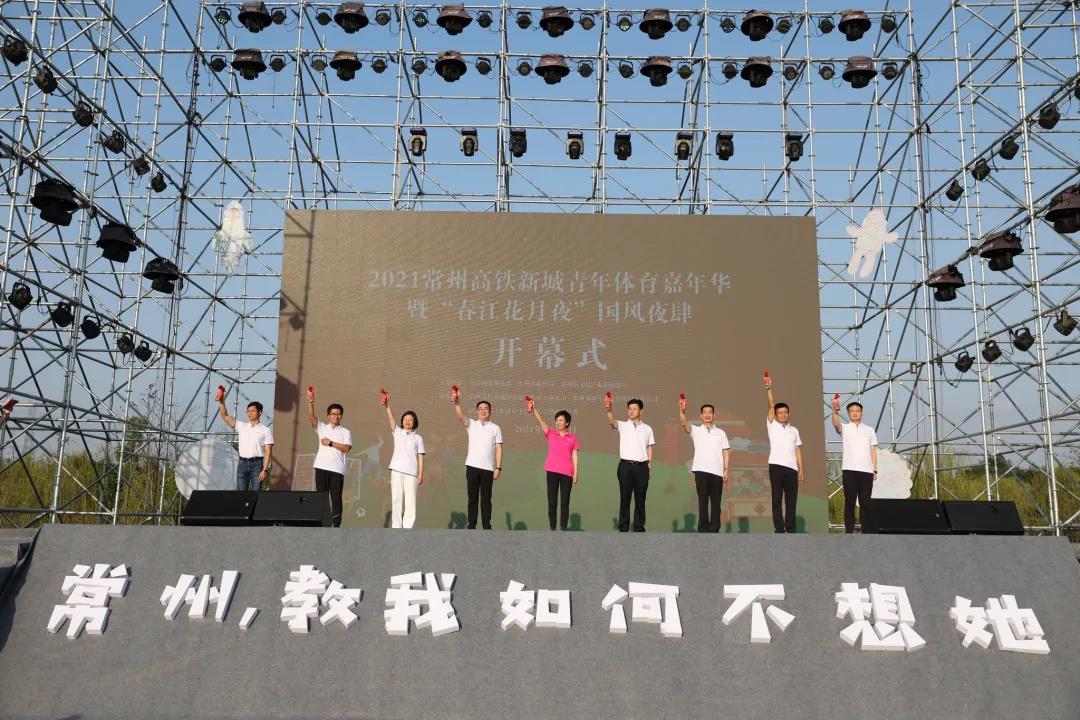 10月1日,2021常州高铁新城青年体育嘉年华暨“春江花月夜”国风夜肆在常州新龙生态林燃情开幕。