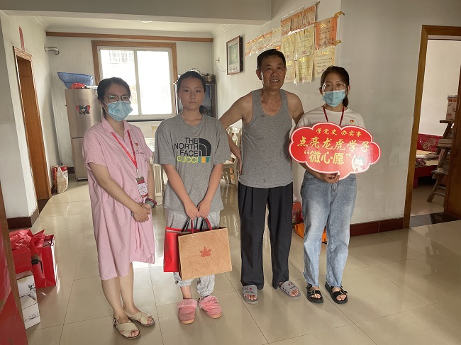 “太感谢你们了,我家孙女从小就喜欢画画,这次肯定很开心,终于可以用这个绘画板画画了”龙虎塘街道一贫困家庭孩子的爷爷对街道妇联干部感谢道。 为帮助龙虎塘街道困难家庭学子实现小小心愿,在学党史、悟思想、办实事、开新局上持续用力,街道团工委与妇联、党政办支部联合开展为龙虎学子点亮“微心愿”活动,将学习教育成果转化为“我为群众办实事”实际举措。活动自7月23日开展以来,已经征集点亮微心愿5个,把关爱和温暖送到了困难学子身边。 5位学子今年在中考、高考中都获得了较好的成绩,考上了省常中,扬州大学等心仪高校。社区妇联干部和巾帼志愿者们为他们送去了两个书包、两个保温杯、一双鞋子、一套马克笔、一个绘画板及防疫物资等。来自锦珑社区学子的“微心愿”是一本CH图解教程,他说:“爱因斯坦说过,兴趣是最好的老师。很幸运的我找到了我的兴趣编程,为自己热爱的去学习,去坚持,我相信可以伸手够到更远的天空!”