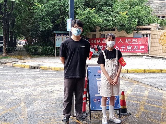 “请您佩戴口罩。”“请您测量体温,做一下登记”…… 8月25日,在龙虎塘街道玲珑社区各小区的入口处出现了一群青春的身影,一些正处于休假的孩子们,主动报名参与社区防疫一线。 社区工作人员先对孩子们进行流程操作的专业培训,为他们佩戴红袖章,然后带着孩子们到小区门岗处,配合点位上对的工作人员开展查验工作。 无论是骄阳似火还是细雨蒙蒙,无论是早上8点到岗还是晚上9点离岗,孩子们都坚守在防疫的岗位上,不断提醒小区居民佩戴口罩,协助查看“双码”、为他们测量体温,并做好外来人员、车辆的登记,社区的许多居民为他们点赞并主动配合他们的工作,在他们一张张稚嫩的脸庞上,透着无比坚定的信念。 在这特殊战“疫”时刻,孩子们每天不停地重复着“请出示行程码、健康码”,一句简单的话,一个简单的动作,都传达着他们最简单的爱、最真挚的情和最热忱的担当。