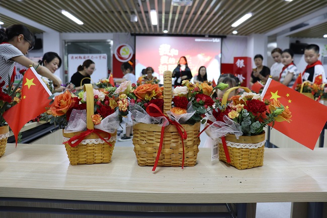 9月25日,三井街道团工委世茂香槟湖社区团支部组织开展了“以花为礼献祖国”为主题的插花活动,让各家庭带领青少年在学习插花技艺的同时,感受国庆的喜庆气氛。 活动现场,社区团支部精心准备了各种娇艳鲜花,室内弥漫着浓郁的花香,红色花彰显中国特色,粉色花代表爱意与真心,淡色花系寓意生活的温馨与美好。大家在花艺师的指导下,尽情发挥着想象力与创造力,经过巧妙的插花艺术,原来零散的花材,一步一步变成了国庆主题的精美花卉艺术品,大家互赏作品的同时,感受花草之美,感恩父母之爱,感悟爱国之情。 随后大家手捧花篮,唱响“我和我的祖国”,并在留言板上写下对祖国的祝福,把这段像花儿一样美好的幸福时光定格留在彼此的记忆里。