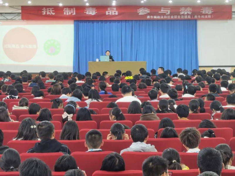 为进一步增强学生法治观念,加强禁毒教育,提高识毒、拒毒、防毒的意识和能力,10月19号下午,奔牛镇政法和社会综合治理局联合常州航空技工学校举办主题为“抵制毒品 参与禁毒”法治讲座,讲座邀请常州高新区(新北区)人民法院审管办(研究室)法官助理杭彧礽主讲,共600余名2021级新生参加。