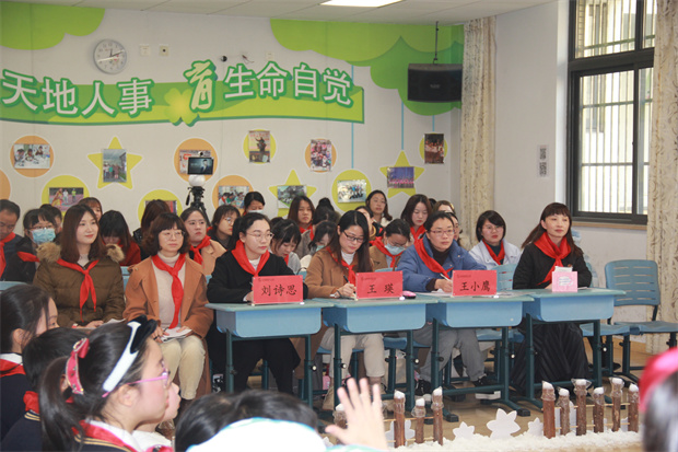 龙虎塘实验小学三7中队曹颖和龙城小学的二8中队朱丹两位中队辅导员带领队员分别围绕“北京冬奥”和“劳动教育”展示了少先队主题教育活动。活动主题鲜明聚焦,内容丰富多彩。 曹颖老师和三7中队的队员以《龙娃燃起冰雪梦 喜好领巾迎冬奥》为主题进行了汇报展示。活动现场营造了浓郁的冬奥丰富,入场券、伴手礼,冰雪雪布景,创设生动的游馆情境。跟着两位小导游,队员们从冬奥知识、冬奥建筑、冬奥英雄、冬奥饮食四方面汇报了前期红领巾玩伴团的研学成果。通过活动中,队员们更加关心国家大事,热爱体育运动,树立了民族自豪感,一颗红心扎根生命。队员们都决心系好领巾,时刻准备着,在生活中,用自己的行动迎接冬奥,助力冬奥,拔节生长。 朱丹老师和二8中队的队员带来了《劳动大挑战 红豆乐当家》的活动展示。劳动是人类社会最基本的实践活动,是创造和获取物质财富的根本途径,劳动教育是少先队组织教育的重要任务之一。活动中,通过“研学过程乐回忆”“身边队员妙点赞”“劳动技能争挑战”“劳动榜样我发现”四个环节,引导队员体验劳动实践,致敬劳动模范,懂得“劳动最光荣,奋斗最幸福”的道理。 两个生动的主题活动结束后,两位辅导员老师结合活动设计理念进行了说课和反思,让与会的辅导员老师们进一步了解活动的设计意图和育人价值。 现场的辅导员老师们围绕两个活动进行了深入的研讨,发表了自己的收获和感悟。 龙虎塘实验小学中队辅导员刘亚妮老师认为曹老师善于打破“大全美”的固有格局,敏锐地抓住“冬奥”这一社会热点,以小见大,全程在“冬奥”主线的引领下,营造了真实生动的情境,挖深、讲实、做细,不管是冬奥的本体知识、建筑特色,还是正能量十足的英雄事迹、特色满满的冬奥美食,都赋予了育人价值,一颗颗强国梦的种子在队员心中生根发芽。 龙城小学的中队辅导员储蕾老师以三个“实”对二8中队的活动给予点评。一实:充实,朱丹老师带领二(8)中队的孩子进行东南村劳动实践研学活动,体会劳动的快乐充实。二实:务实。挑战100s,课堂沉浸式的劳动挑战,引导孩子们发现生活中的劳动小妙招,既快又能get劳动新技能。三实:真实。通过自身的劳动,去思考、发现、寻找身边的劳动者。在感恩劳动中发扬美,懂得“劳动最光荣,奋斗最幸福”的道理。活动还体现了新基础教育的四个“还给”:把课堂还给学生,让课堂焕发生命活力;把班级还给学生,让班级充满成长气息;把创造带给老师,让教育充满智慧挑战;把精神焕发的主动权还给师生,让学校充满勃勃生机。