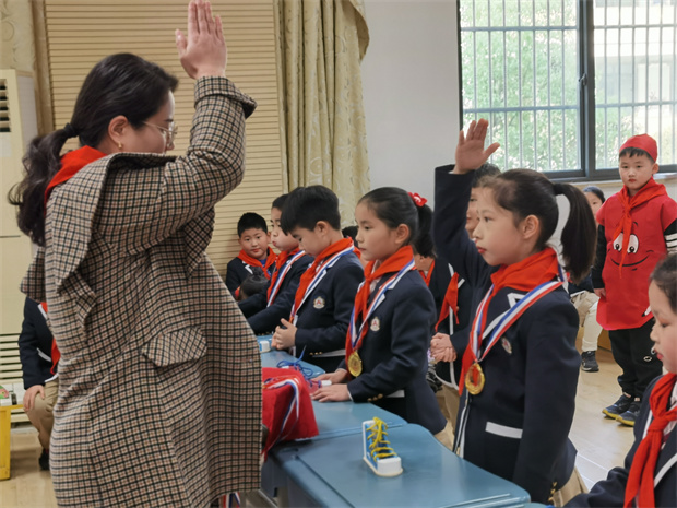 王总辅对两个活动进行了高位引领。她用“红”和“新”点评了三7中队的活动,称赞曹老师紧扣社会热点和自我成长开展一堂新颖而应时的主题教育活动,并延伸出了一些可以留痕的文化产品,给队员们留下了美好的回忆和深刻的触动。她用“纯”和“真”评价了二8中队的活动,认为朱老师将二年级的孩子单纯的情感和对劳动的热爱无添加地展示在了活动总,并让队员在活动展现出他们纯自然的个人风格。王总辅希望每个辅导员都能在少先队活动中,聚焦主题,长程架构,促队员真成长。 王总辅以线上线下相结合的方式,组织全区辅导员进行少先队学习宣讲活动。王总辅传达了江苏省少工委七届四次全会会议精神,带大家学习了《中共江苏省委关于全面加强新时代少先队工作的实施意见》和“英雄中队”“劳动教育”“课后服务”三个主题相关的活动通知。辅导员们在学习中明晰了新时代少先队工作的总体要求、工作原则和工作内容,明确了新时代少先队工作的四个重点:进一步加强新时代少先队员的思想政治引领,进一步推动新时代少先队组织创新发展,进一步加强新时代少先队辅导员队伍建设,进一步加强时代带少先队工作的组织领导。辅导员们将以《实施意见》作为新时代少先队工作的行动纲领,把党的要求不折不扣地贯彻落实到少先队的工作和建设中,团结、教育、引领广大少年儿童努力成长为担负起民族复兴重任的时代新人。 本次观摩活动,不但锤炼了辅导员老师组织开展少先队主题活动的专业能力,更坚定了辅导员们为党育人、为国育才的使命担当。“请党放心,强国有我。”这是新北少先队工作者对着星星火炬许下的铮铮誓言。推动新北区少先队工作的高质量发展,构建新北少先队工作的新格局,新北少先队在奋斗之路上砥砺前行。