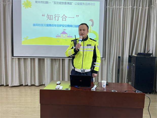 为广泛宣传交通安全知识,提高广大学生及家长的交通安全意识,12月29日下午,新北区恩悦社会工作服务中心联合国宾社区一起走进香槟湖小学,开展了“文明交通伴我行”的主题活动。活动邀请到河海交警支队的交警赵浩警官来校做专题讲座。 人的生命只有一次,永远不可能重来,赵警官提到,交通安全是非常严肃的事情,希望队员们通过这次活动获得相关的交通知识,同时和家人分享,明确交通安全的重要性。 讲座伊始,赵警官首先提出了两个问题,我们为什么要遵守交通法规?为什么会发生交通事故?接下来赵警官对步行、骑行、乘坐汽车等方面的安全知识进行了宣讲。