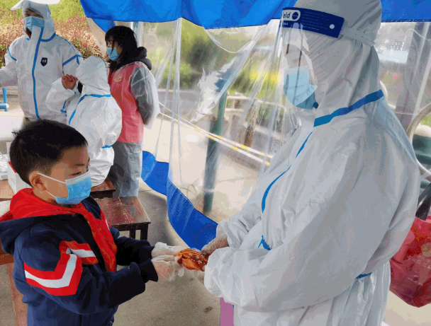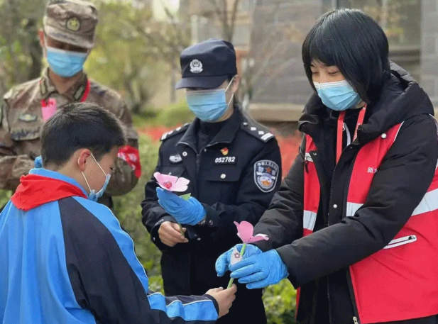 来自龙虎塘实验小学的少先队员们发起了一场手作棒棒糖花的活动,队员们在叶片上、花瓣上或小卡片上写下感谢和鼓励的话,并做成一束束“小红花”送给奋战在防疫一线的工作人员。